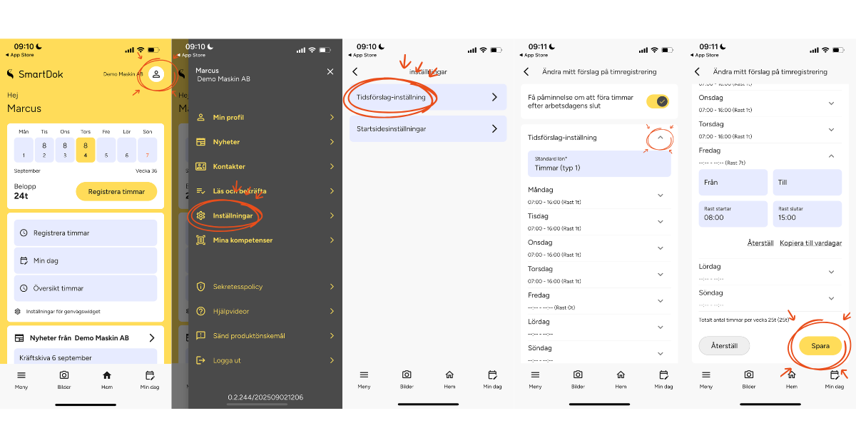 Visste du att du kan sätta upp tidrapporteringsförslag i din SmartDok-app?